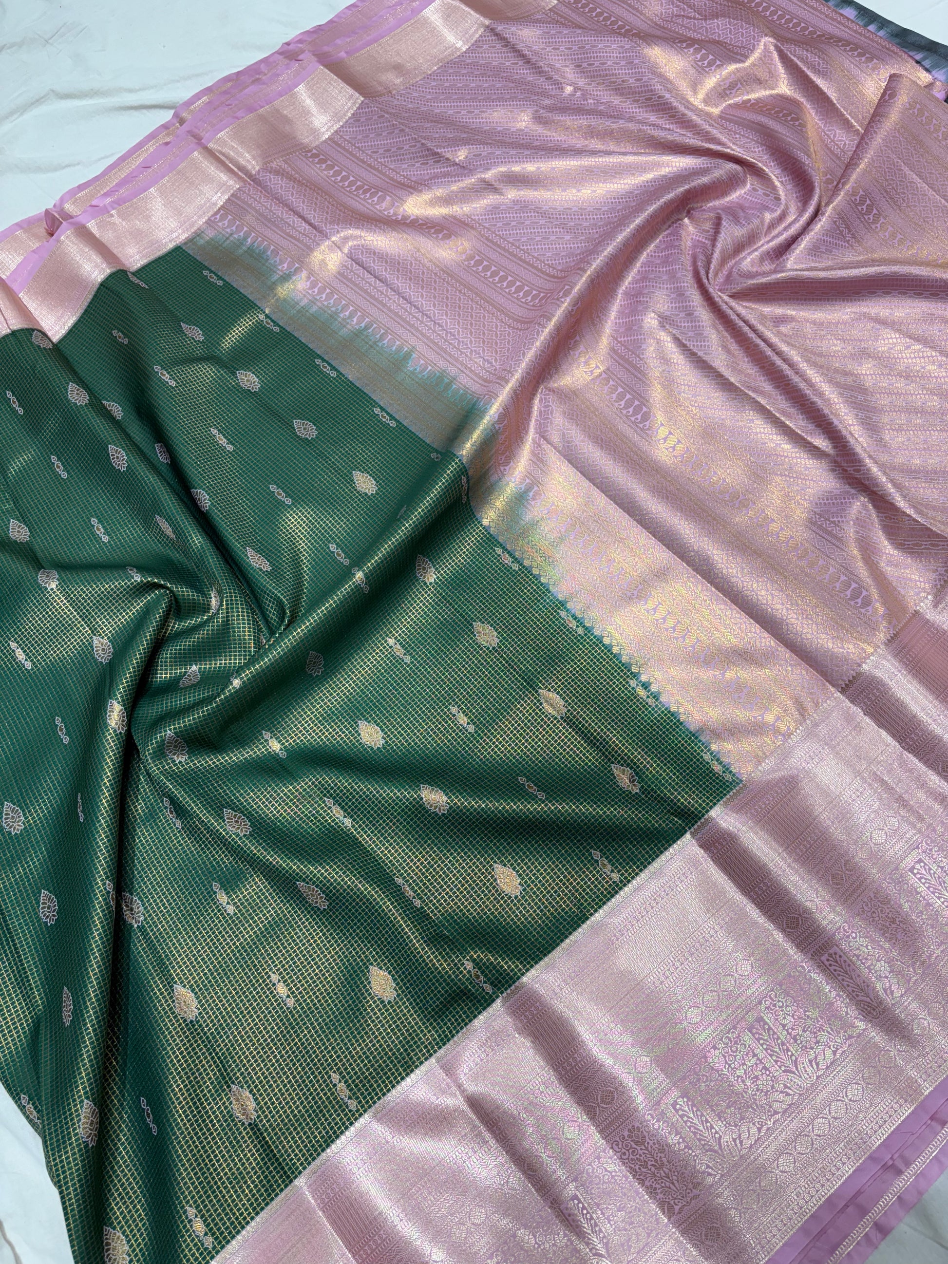 Elegant Pink & Green Banarasi Silk Saree